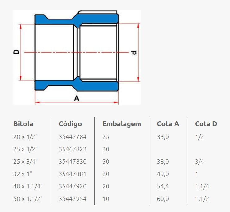 Luva Latão Solda Mista PVC Soldável 50x1 1/2" Marrom - Tigre